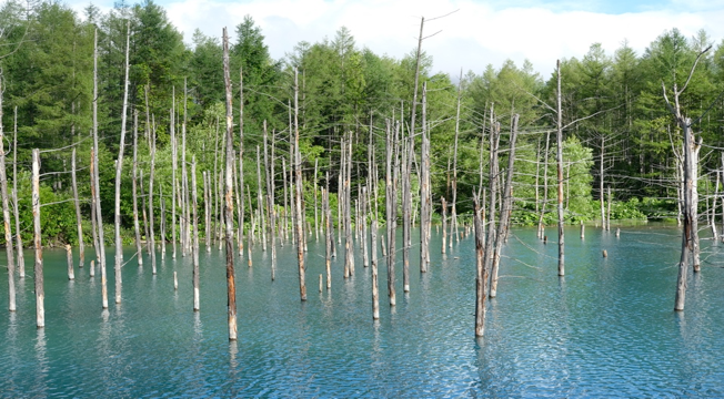美瑛の青い池も、なんだか田んぼに見えました。