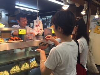 コロッケを手に