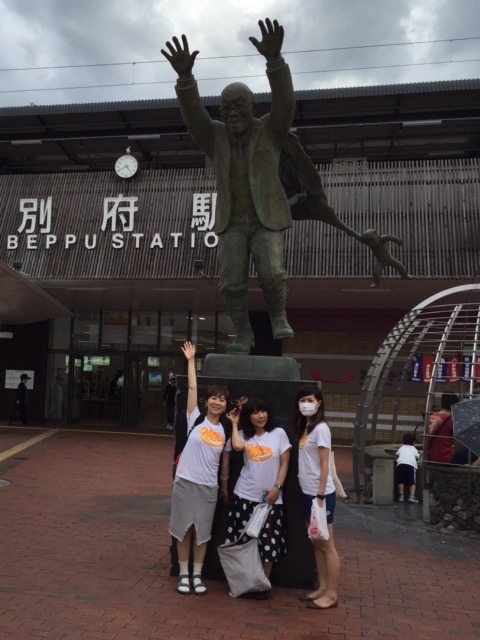 油屋熊八さんのちょっぴり不思議な銅像前で
