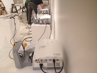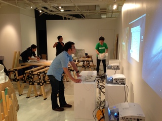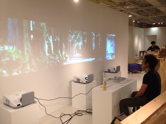 こちらは「99のことば」の展示にむけて プロジェクターの調整が行われている現場ですね。 テスト上映ですが、いいなぁー。