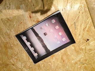 「このなかにiPadを仕込んで、 気仙沼で撮りためた動画を流すんです。 手元にiPadがなかったんで iPadの画像を原寸でプリントアウトして、 それだけを頼りにつくりました。 ぶじに入って、よかったですー」
