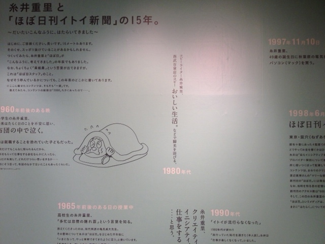 こちらは、ほぼ日の年表ブースですね。 このような壁が16メートルも続く 大きな展示になっています!