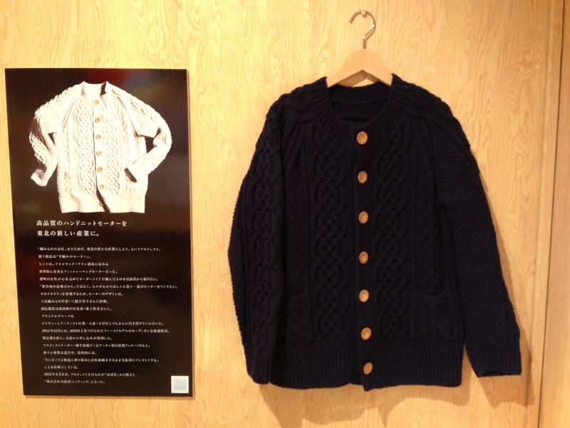 編みもの作家、 三國万里子さんデザインによる 気仙沼ニッティングの 記念すべき第1弾サンプルも 展示されていますよー。