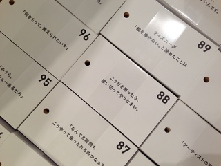 本日のトークイベントの開催にともない、 13:30〜16:00は会場内の一部展示が、 通常とことなり、 99の「はたらく」言葉のスクリーン、 および「東北の仕事論」コーナーの動画の 音声が無音になります。 なにとぞご了承ください。