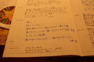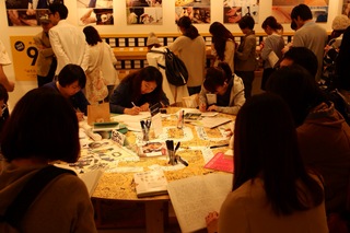 モンドくんの似顔絵屋さんのとなりで、 みうらさんブースの正面で、 「99の言葉カード」に並ぶ方々の傍らで、 しずかに、真剣に、 感想を書いてくださる方々もいれば、 しずかに、真剣に、 それらの感想を読んでくださる方もいたり。