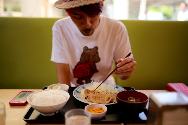 ごはんが大盛りになった生姜焼き定食。