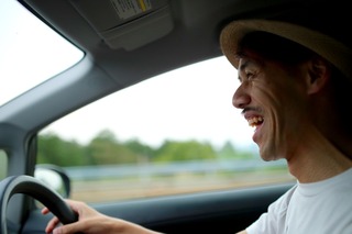 途中で車で移動中の