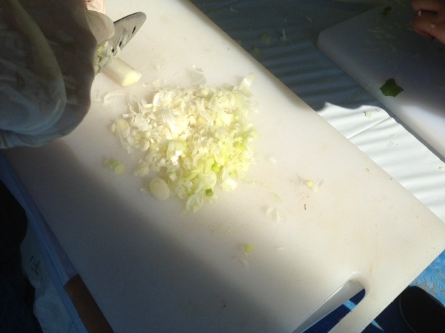 ネギをきざんでますね。