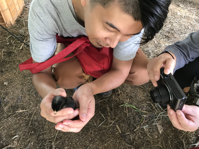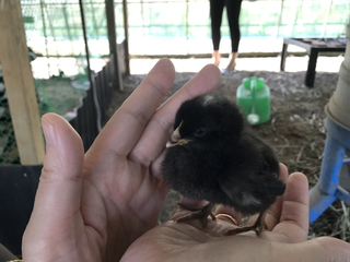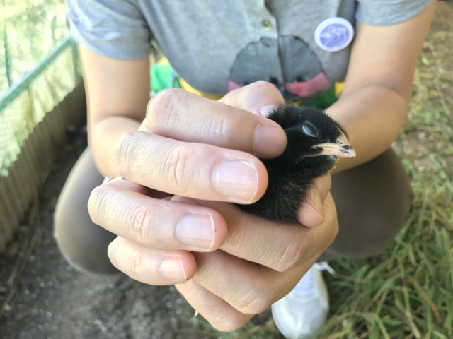 最初の触れ合いはヒヨコでした。