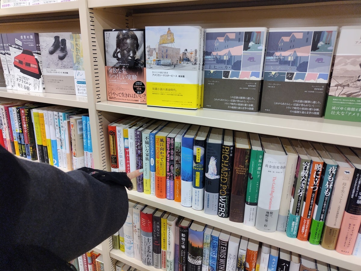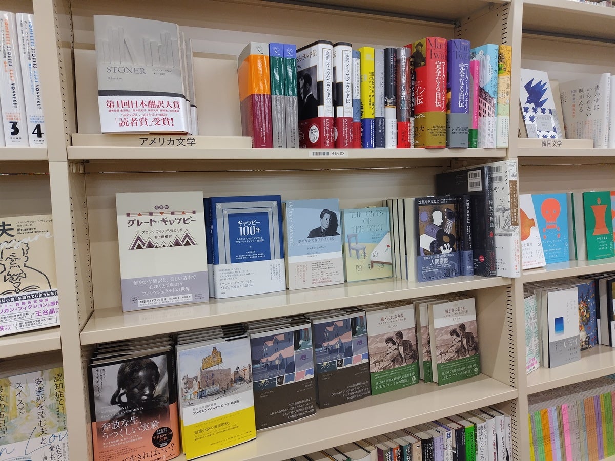アメリカ文学の書架の前で眺めていると、