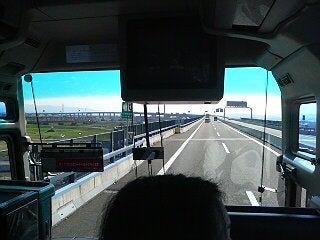 なんか、高速っぽいところをバスで移動中!
