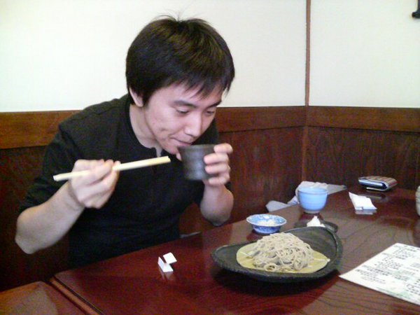 おろしソバをすする西田くん。