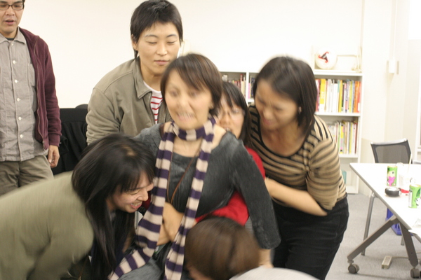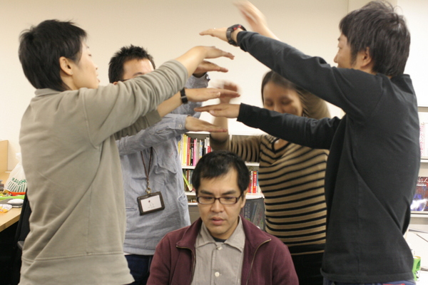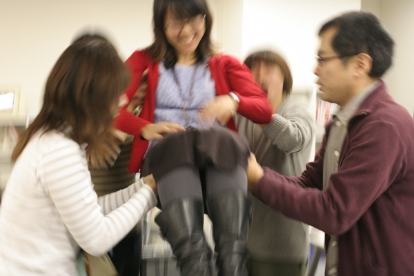 4人で、両膝の裏と、両脇に指をはさんで、