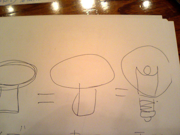 キノコ、電球。