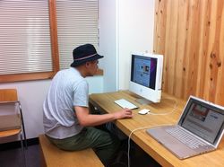 背後では、高橋さんが、作品をがっつり