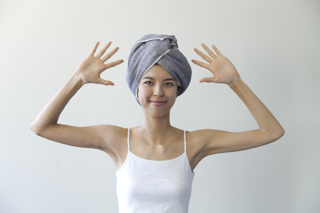 タオルを首にかけるとき、