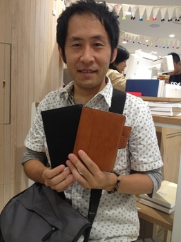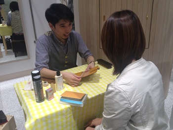 ただいま、最後のお客さまがお持ちくださった革カバーの
