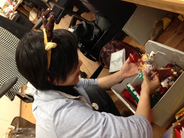 となかいのカチューシャをしています。