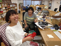 とくいげに「みてみてー!」と赤い手袋をはめて