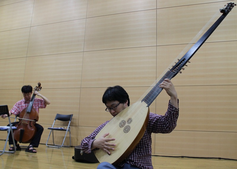 休憩時間に、リュート奏者の坂本龍右さんが