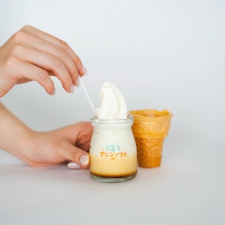 すこーしずつ溶けてくると、ソフトクリームと濃厚なプリンが混ざって、ほんとうにおいしいんですよ‥‥。あぁ、さっき食べたのに、また食べたくなってきました。(朝アイスです)