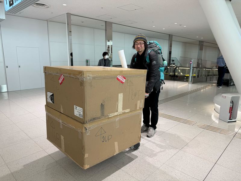 サイズ超過をしつつ、飛行機に積んでもらい。