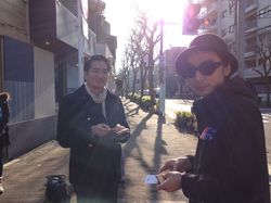 白倉ニットさんと平さんの名刺交換。