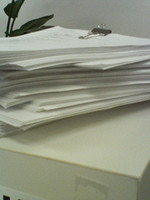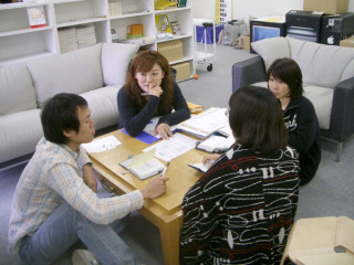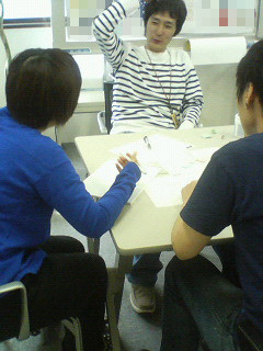 さて、このにいさんたちは 何を話し合っているかといえば! センチメンタルテリトリーTシャツの 販売から、ほぼ日ストアが、 もりもりと便利になる予定だそうで、 その打ち合わせ中とのことであります。 机の上の上にはぺらっと一枚、 なんぞの設計図。 理系的な人の書く文字がへらりへらりと 書いてあります。