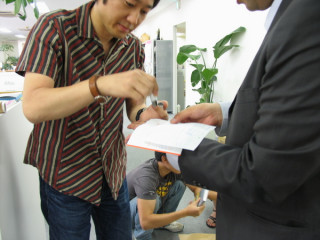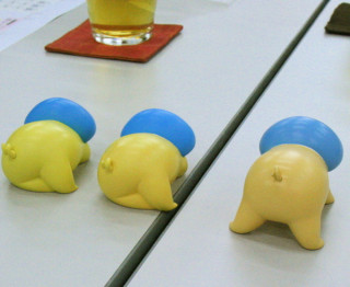本日たかしま先生に お越しいただいたのは、 「ブタフィーヌさんシール」に使う 「ブタフィーヌさんの顔」を 描きおろしていただくお願いをするため。