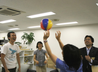 「あー、むっちゃ、 いきづまったわ〜。 お、ええところに ビーチボールあったな。」
