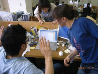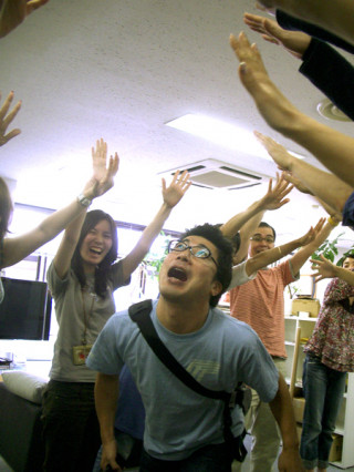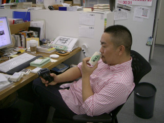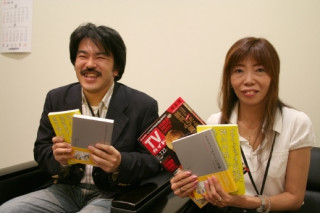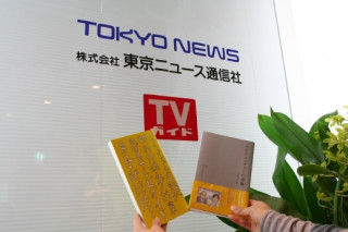 緊張しながら編集部にお邪魔した私たちも その瞬間からすっかりリラックス。 ちゃっかり 「TVガイド」、『TVウォッチャーの逆襲』、 『ムダ話集 ほぼ日テレビガイド男子部2003〜2007』 の3冊で記念撮影をさせていただき ご挨拶完了です! (写真2枚目が ずうずうしいお願いにも にこやかに応対してくださった 並木編集長と石塚副編集長です!)