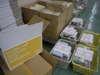 というわけで、アドレス通商さんへ着きました!おお、ばりばりと、きびきびと、発送作業が行われています!現在、送られているのはセンチメンタルテリトリーのTシャツなど。ありがとうございます!ありがとうございます!