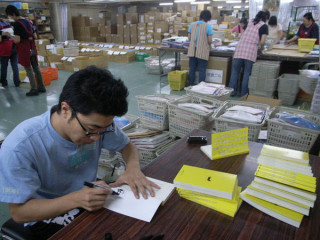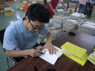 ナカバヤシです。業務連絡、業務連絡。西本さん、永田さんおふたりが、のんびりとつけ麺なんか食べてる間になんと!サイン本の注文数は 273 冊!になりました〜。今日中にサイン終わりますかー。だいじょうぶですかー。それはそれとしてつけ麺おいしそうでしたー。
