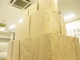今日の午後、とどいたダンボールは全部で24個。なかなかすごい迫力です。壁のようです。