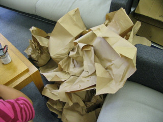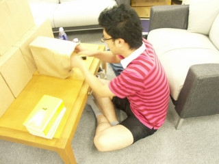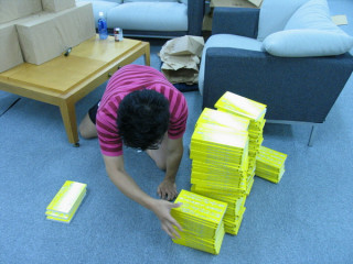 セルフサービスでやっております。バリバリ、と紙をやぶいて、やぶいて自分で積んでいくのです。