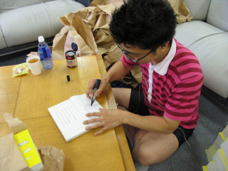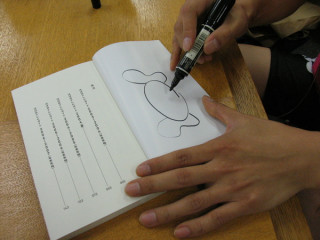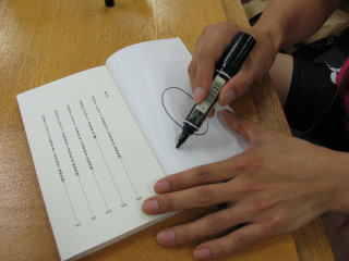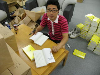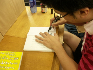 さて、記念すべき1101冊目。どんなサインを書くのでしょうか?まずは丸かいて・・・