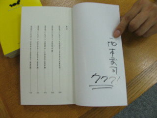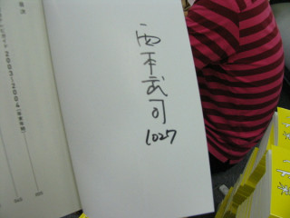 先日の600冊にひきつづき今日の第1冊目です。はぁ〜〜〜こういうサインしてたんですね。フルネーム、漢字だったんですね。今日は変な絵とか描かないんでしょうか。