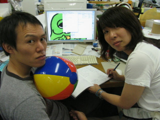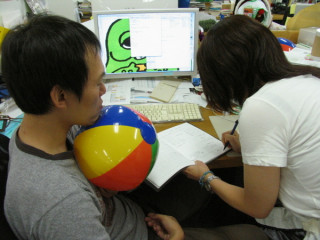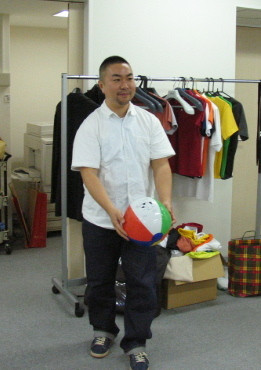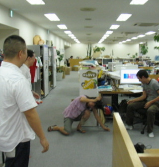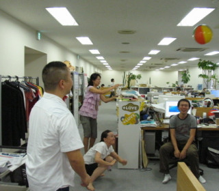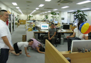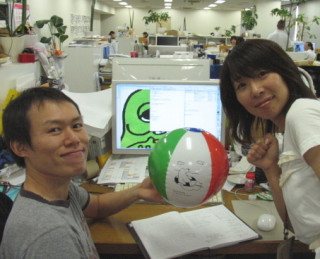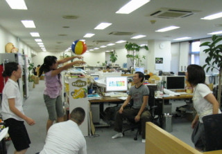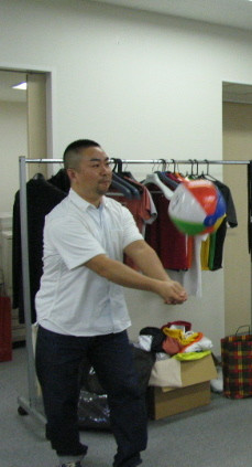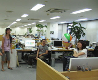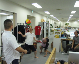 誰よりもビーチボールを返していたのはそう、このように(写真)常に腰をいれてボールを受けていたのです!すごいぞ『しろくま君のビーチボール』遊び、しばらく社内で流行りそうです!