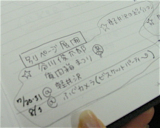 打ち合わせ中のの秘密のノートを激写。みなさま、読めますでしょうか・・・。「谷川俊太郎質問箱まつり」と書かれています。祭、があるんですね?!