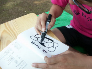 最後の一冊に、ひかえめに名前だけ書き込もうとしたところがすかさず「それだけ、ですか?」と。は最後の一冊に、おさるを書き込みました。それは、それは丁寧に。