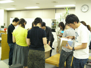 むふふふふ。パチ! パチ! パチ!こんなにうれしそうな印刷会社の人を私は見たことがありませんよ。そして、この瞬間がこんなにうれしいものだとはこれまであまり意識したことがありませんでした。『谷川俊太郎質問箱』をお待ちのみなさん、これまで応援してくださったみなさん、ん? それは何のこと?と思っているみなさん!届きましたよ。『谷川俊太郎質問箱』の見本の山です。