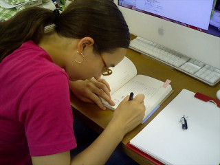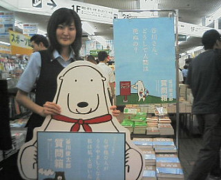 当然、書店員のみなさん、全員忙しく、 コウノ、どうしていいかわからず、 店内の隅でくまちゃんと 立ち尽くすこと10分。 ・・・・。 一息ついたころ 三省堂・秋山さんと神原さんが 駆け寄ってきてくださいました。