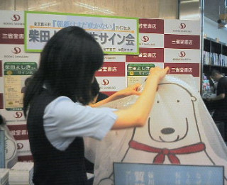 店内はお客さんでいっぱい。 しまった! 人気作家のサイン会が行われてる時間に お邪魔してしまった!!