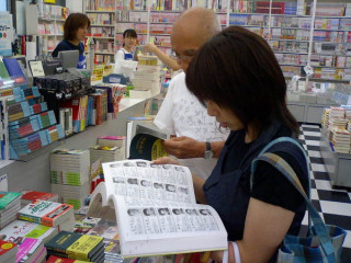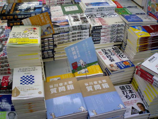 書きあげた色紙を文教堂書店赤坂店の店長さんにお渡ししました。「面白い質問は 正しい答に勝る!」と書いてあります。これは「正しい」というところがちょっぴりミソでありますね。