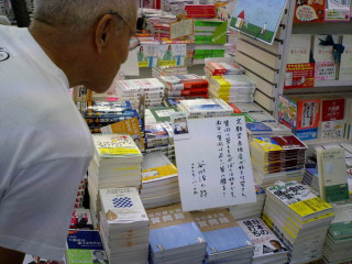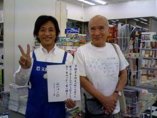 本屋さんのなかをぶらついていると、先ほど書いた色紙が飾ってありました。「もうかよ!」(谷川さん)店長、反射的に仕事が早い!