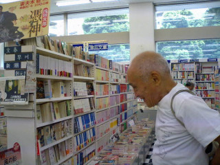 『谷川俊太郎質問箱』の本を視察し色紙を書き終えた谷川さんは恒例の立ち読みタイムに入ろうとしています。「本っていっぱいあるんだねぇ」いっぱいありますねぇ。