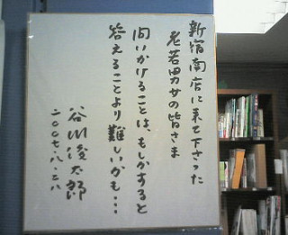 まずは、3階の新刊売り場へ。 そこにも谷川さんの色紙が 飾られていました。