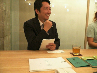こちらの紳士は 名古屋のアメ工房の社長 中村さん。 職人さんがひとつひとつ手作りする 「組み飴」製作の話などを伺います。