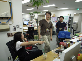 ちょーー喜ぶモギコに気を良くしてか、 カワモっちゃん(写真まんなか)も のりのりで説明するのでした! ※後ろで満足げに微笑む にも どうぞご注目ください。 |