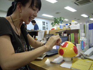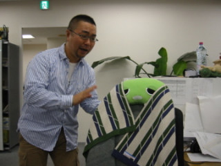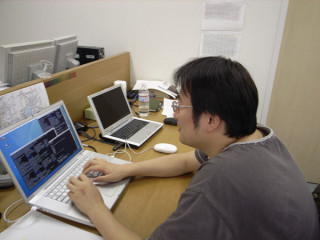 午前中、かわもっちゃんが、 例の、宇宙語を映し出すモニタに向い、 一心不乱にキーを叩いている姿を